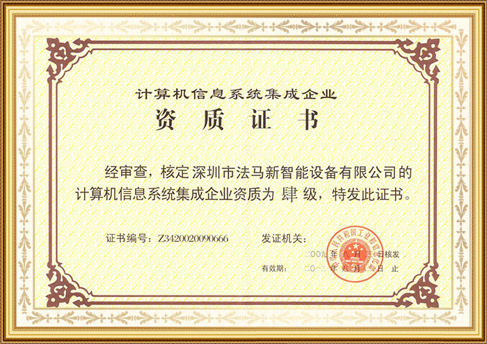 計(jì)算機(jī)信息系統(tǒng)集成企業(yè)資質(zhì)證書(shū)