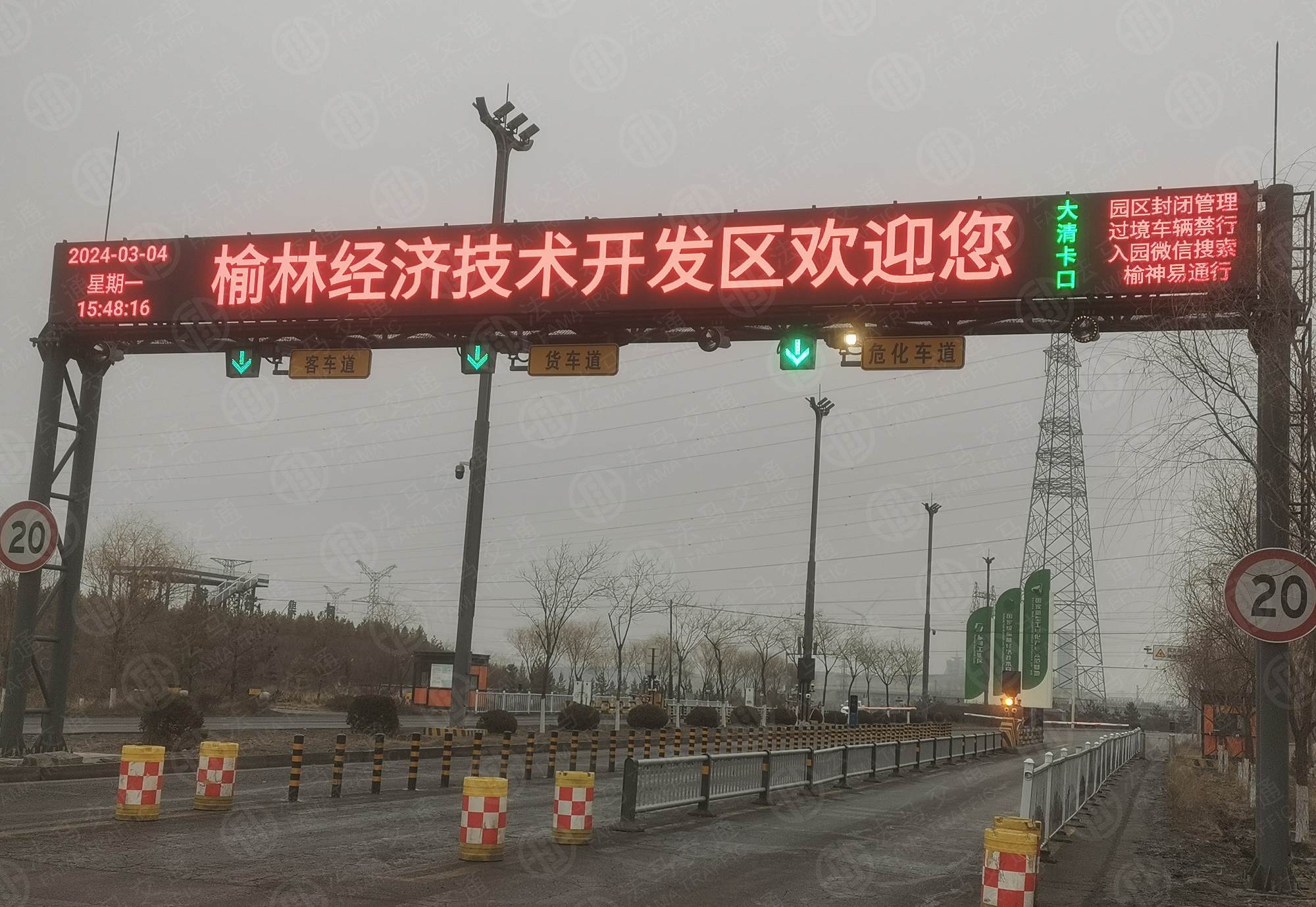 法馬交通陜西榆林清水工業(yè)園區(qū)項目LED屏龍門架案例