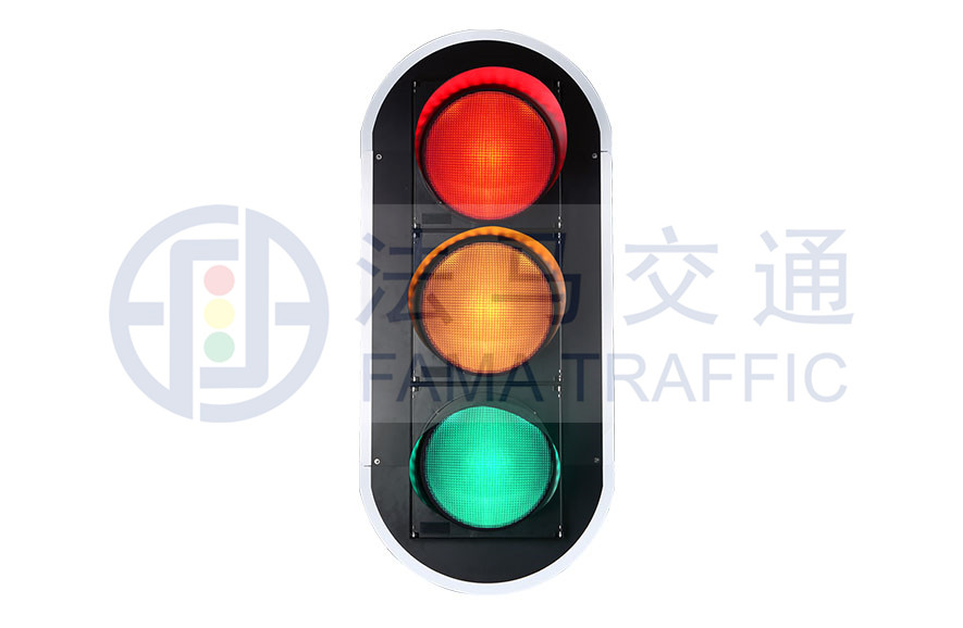 是由紅色、黃色、綠色三個(gè)無圖案圓形單位組成的一組燈,指導(dǎo)機(jī)動(dòng)車通行。