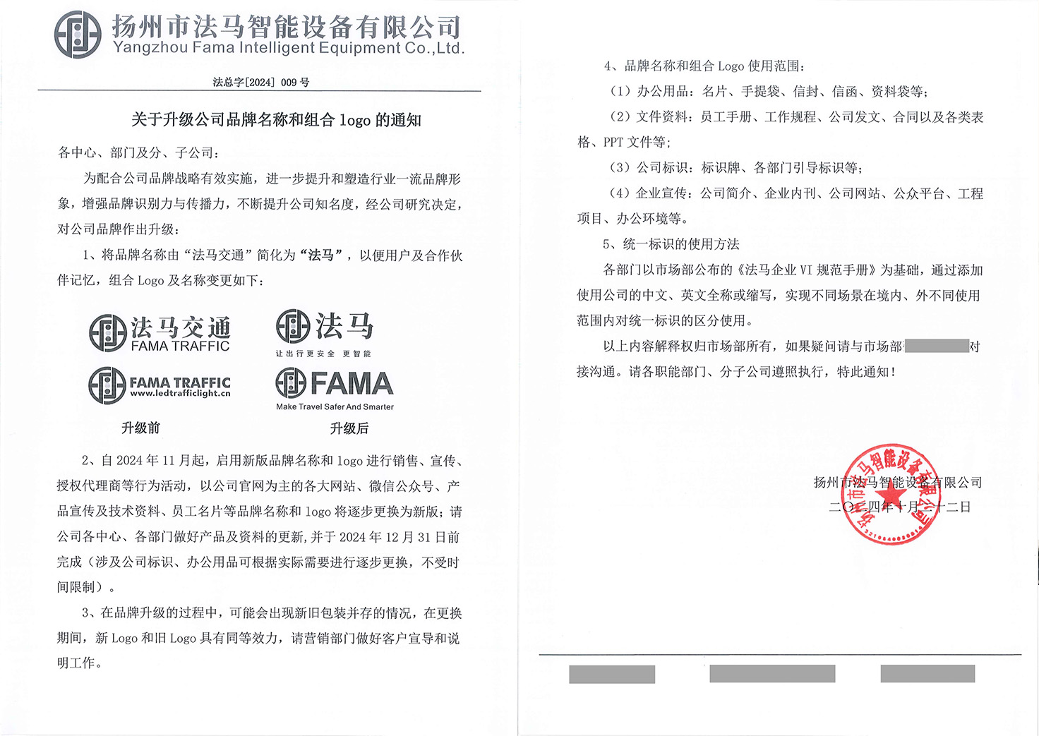 此次更名不涉及任何法律文件如合同、發(fā)票等的更改。我司全稱仍為“揚州市法馬智能設備有限公司”。