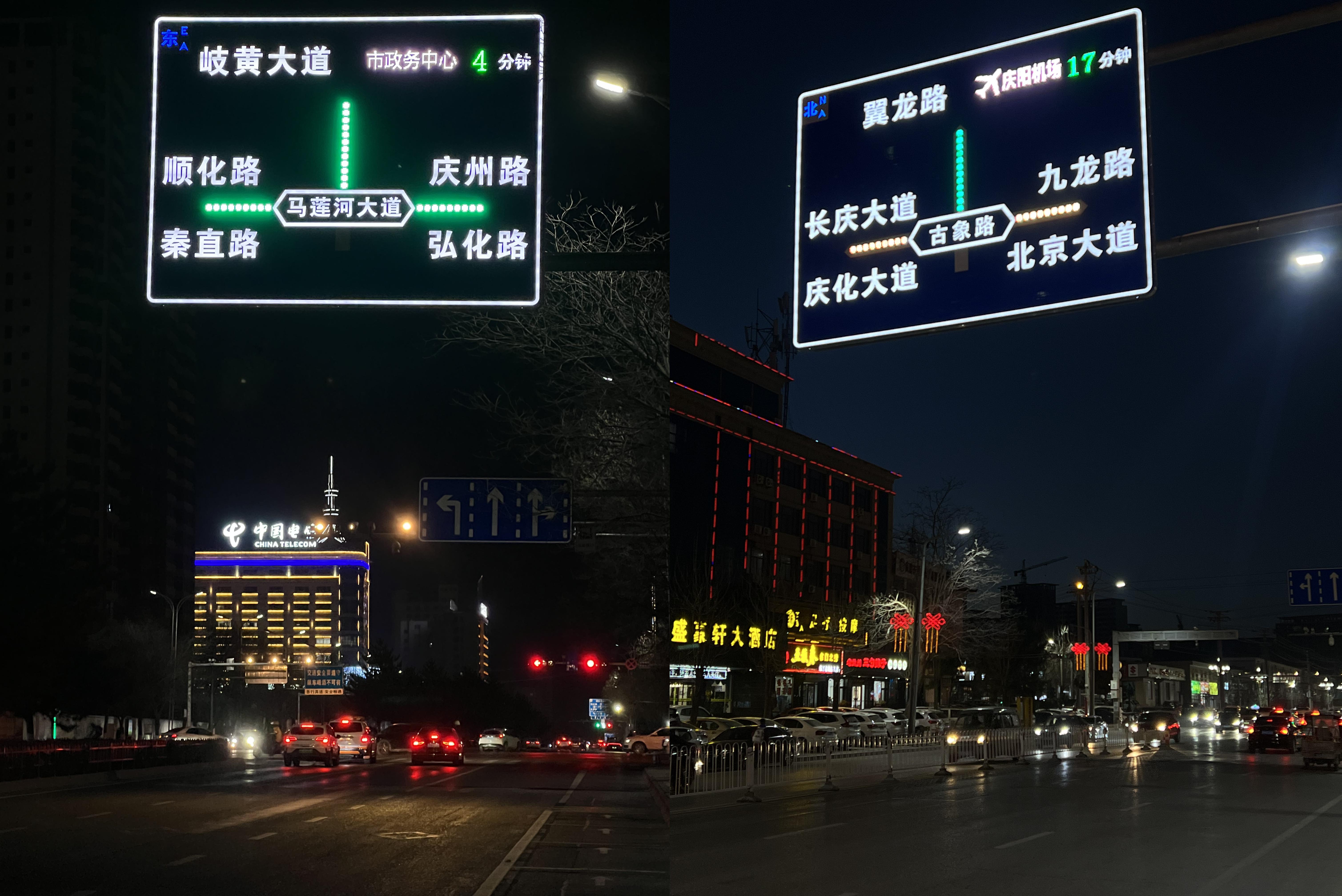 · LED文字屏:戶(hù)外P10 LED紅綠雙色模組,顯示節(jié)點(diǎn)到達(dá)通行分鐘數(shù)和動(dòng)態(tài)文字信息,符合嚴(yán)格交通光學(xué)標(biāo)準(zhǔn),帶有遮光沿設(shè)計(jì)以?xún)?yōu)化視覺(jué)效果。