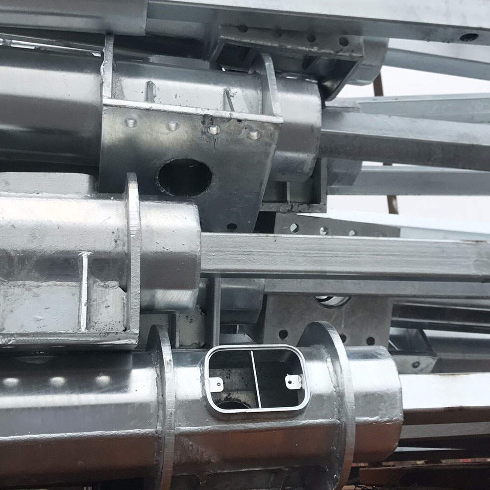 桿體材質(zhì)均采用Q235或者Q345號(hào)鋼,燈桿矩形材料,美觀大方,桿件經(jīng)自動(dòng)縮口埋弧焊合縫焊接,焊縫均為滿焊,平整光滑無(wú)氣孔