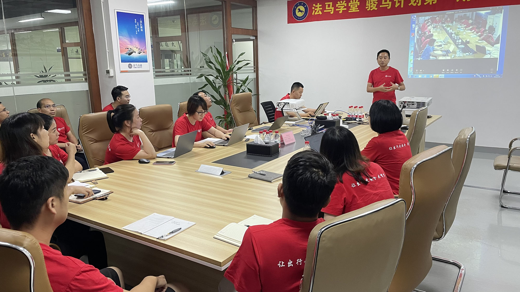 2021年7月30日下午,法馬學(xué)堂正式成立,駿馬計(jì)劃第一期也同時(shí)開營,受疫情影響,啟動(dòng)儀式通過線上、線下方式在深圳、揚(yáng)州兩地同步舉行。參加開營儀式的有法馬學(xué)堂校長楊朝友、副校長胡禮華、總經(jīng)辦陳向陽、各部門總監(jiān)、駿馬計(jì)劃第一期28名學(xué)員,儀式由總經(jīng)辦高開敏主持。
