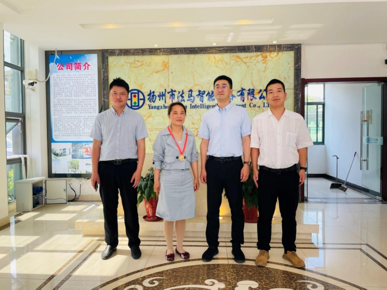 左起:高郵鎮(zhèn)副鎮(zhèn)長黎鵬、法馬交通副總經(jīng)理?xiàng)畛?、高郵市副市長馬舟、法馬交通總經(jīng)理助理李鵬遠(yuǎn)