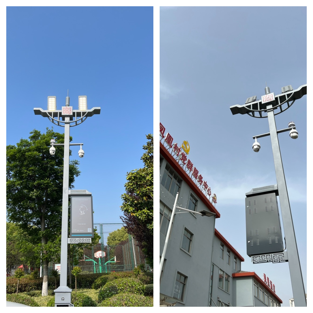 為全面推進(jìn)村級(jí)黨群服務(wù)中心體系功能建設(shè),在全鎮(zhèn)打造“數(shù)字化”服務(wù)體系的特色,提升村級(jí)黨群服務(wù)中心功能水平,高郵鎮(zhèn)率先為9個(gè)村、社區(qū)在標(biāo)準(zhǔn)籃球場(chǎng)旁邊統(tǒng)一配置5G智慧燈桿,實(shí)現(xiàn)智慧照明、安防監(jiān)控、環(huán)境氣象監(jiān)測(cè)、廣場(chǎng)舞教學(xué)、籃球賽計(jì)分、5G信號(hào)覆蓋等現(xiàn)代化功能。